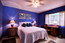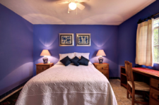 San Miguel Casita is a perfectly located, cozy, welcoming, light filled, well appointed, one bedroom vacation rental. Its charming and comfortable bedroom has ample closets and a closeup view of a mulberry tree growing against the window. Gwen Mazer